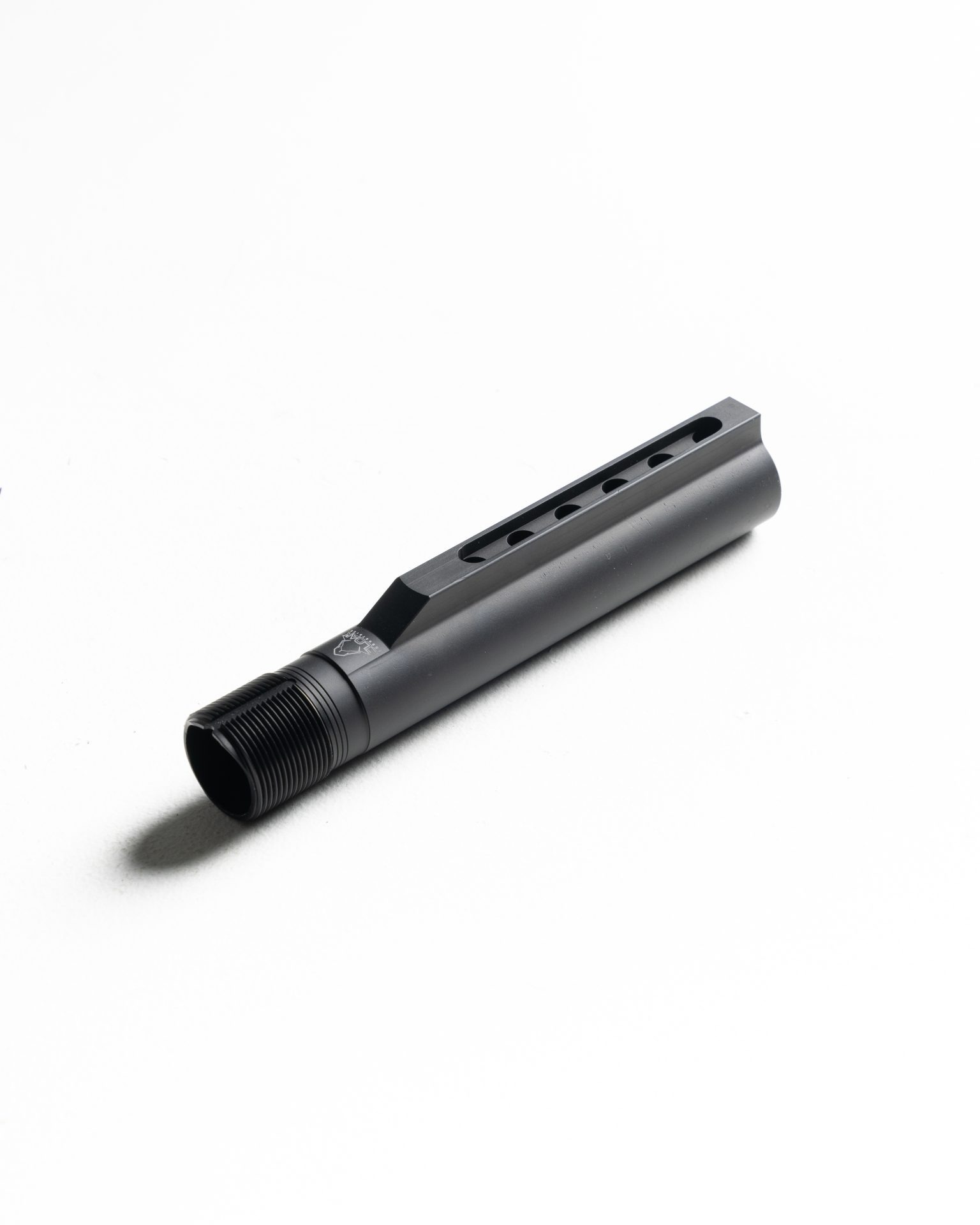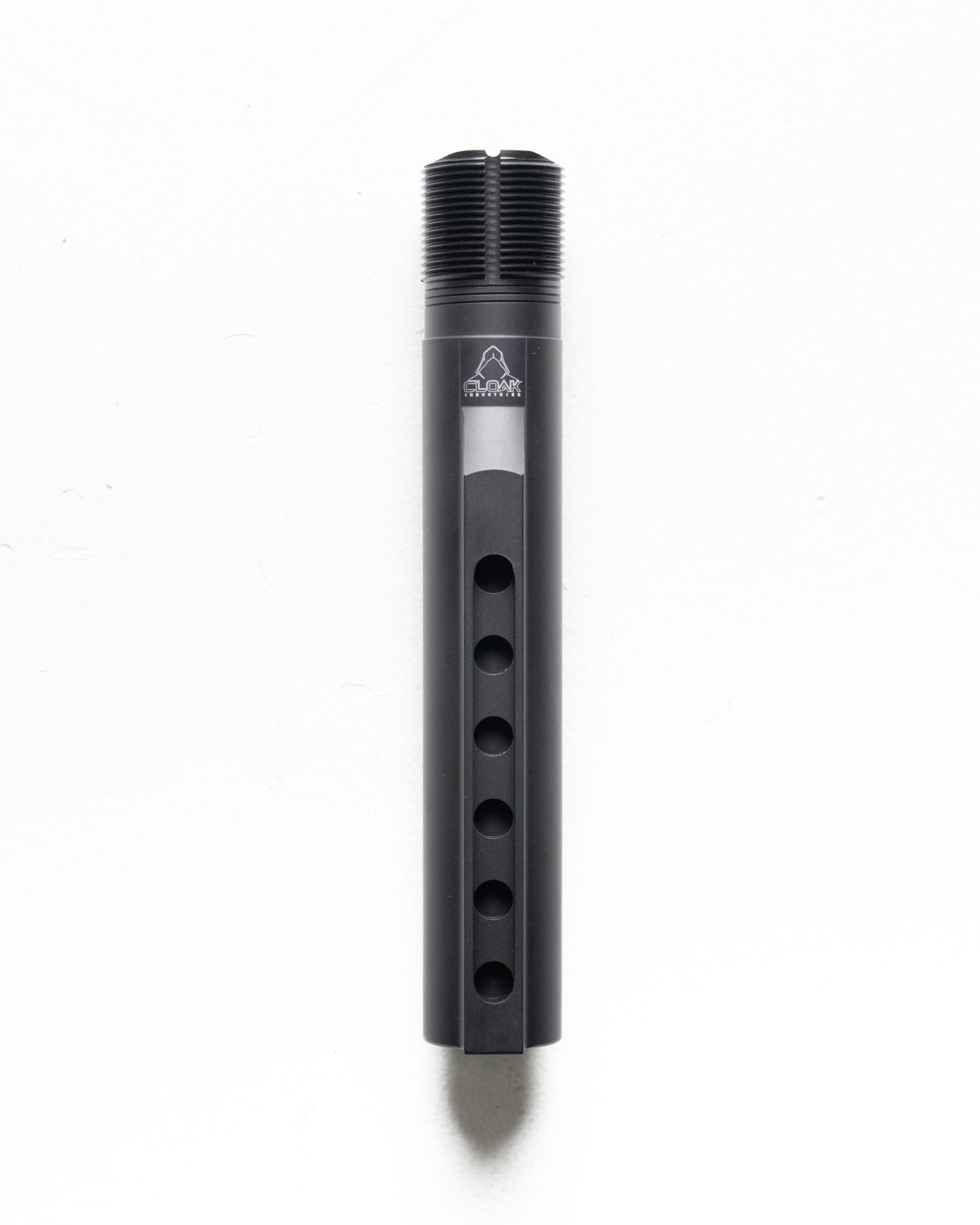 The Cloak Industries marked 6 position AR-15 carbine buffer tube. Perfect for use with the MFR56 belt fed upper receiver or your new AR-15 build. This buffer tube possesses a buffer retainer cutout to ease the assembly process and prevent the accidental loss of your buffer retainer plunger and spring during takedown or maintenance.